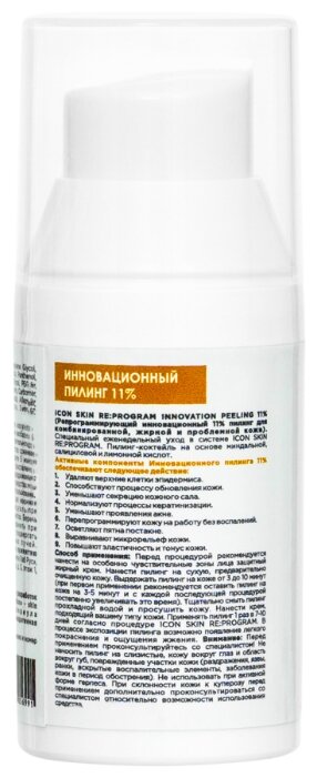 Способ применениянанести пилинг кистью на сухую, предварительно очищенную кожу лица; выдержать пилинг на коже 5-10 минут (начинать с 5 минут в первый раз и постепенно с каждой процедурой увеличивать время экспозиции; максимальное время выдержки - 10 минут).; затем тщательно смыть пилинг прохладной водой и просушить кожу; нанести крем, подходящий вашему типу кожи