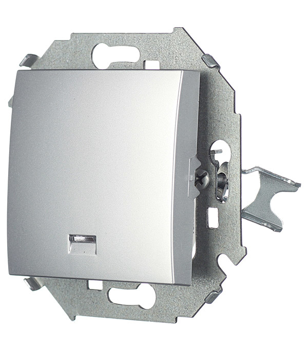 Выключатель одноклавишный с подсветкой 16А 250В винтовой зажим алюминий Simon 15