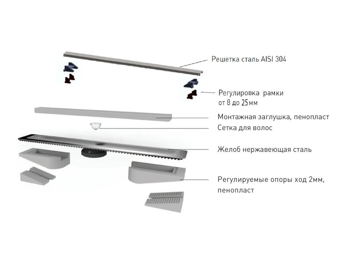 BERGES Желоб водосток C1 Norma 800, матовый хром, боковой выпуск S-сифон D50 H60
