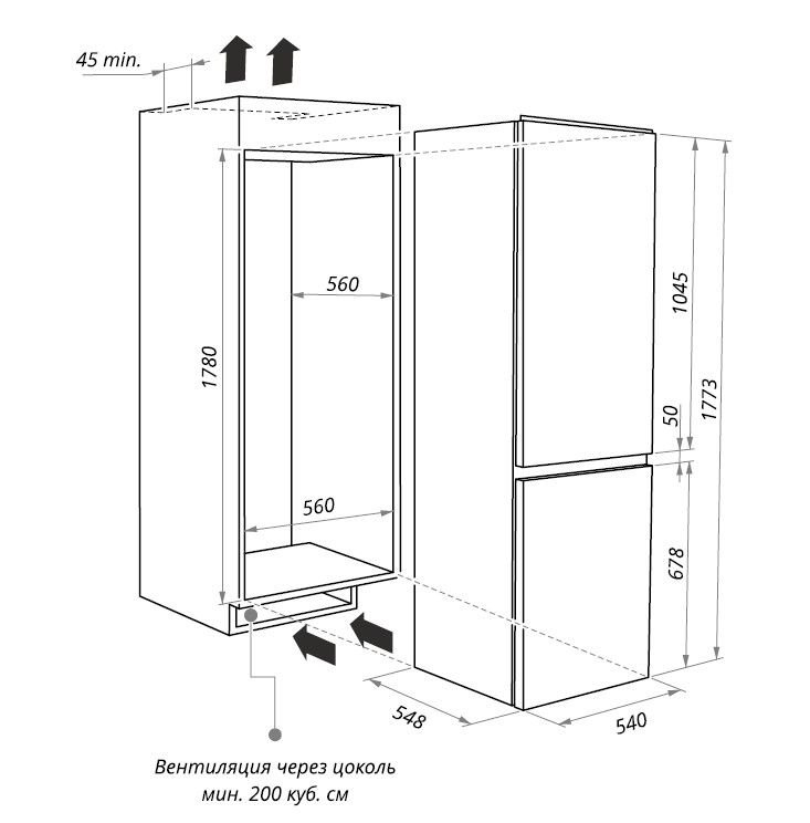 - Дополнительно Холодильная техника MAUNFELD разработана специально с учетом возможности оптимизации пространства внутри каждого прибора: высота стойки для бутылок, отделений и полок регулируется по желанию каждого пользователя для наиболее эффективного использования внутреннего пространства. Различные виды полок из закаленного стекла, и решеток можно использовать для моделирования внутреннего пространства холодильника по желанию пользователя. Внутренние стенки легко чистить благодаря идеально гладкой структуре и покрытию.Размеры для встраивания (ШхГхВ), мм: 560 х 560 х 1780.