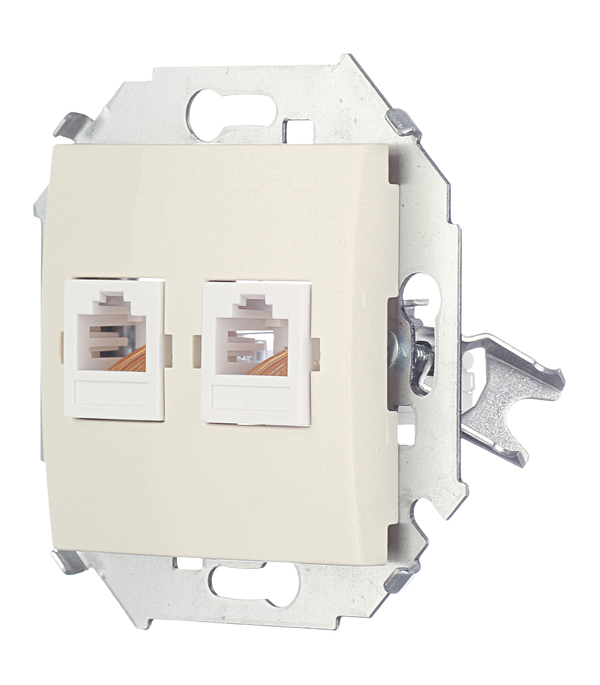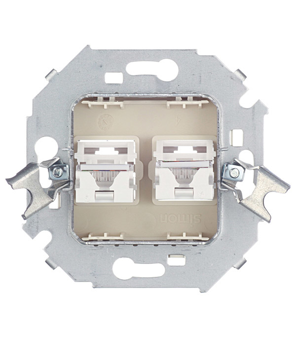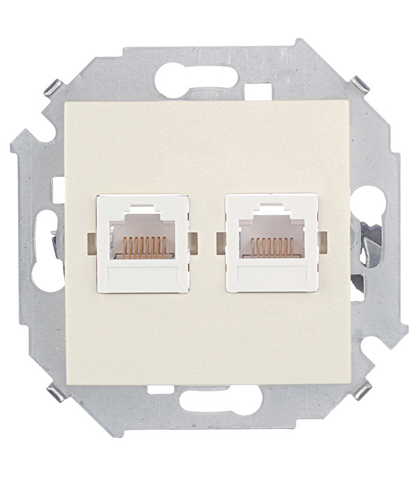 Механизм компьютерной розетки Simon 15 двойной RJ45 категория 5е слоновая кость