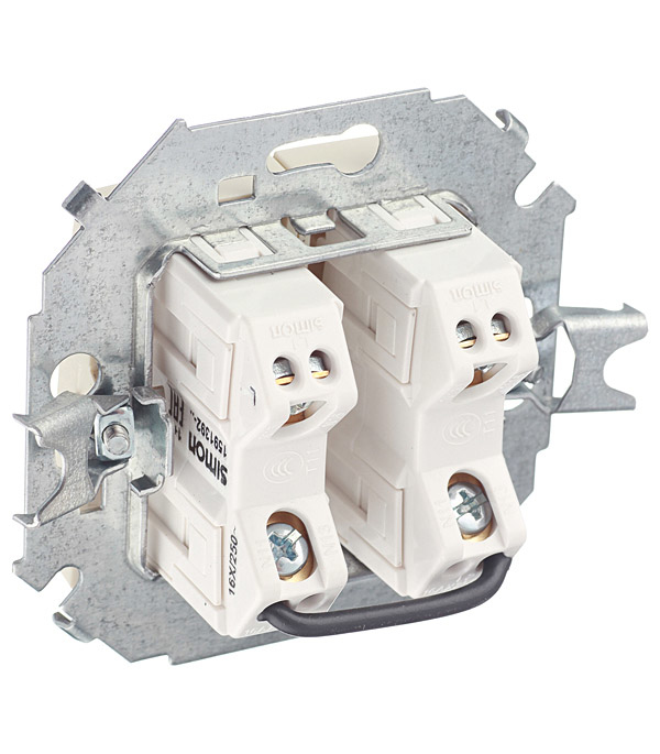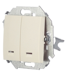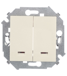 Механизм выключателя двухклавишный Simon 15 с индикацией 16А слоновая кость