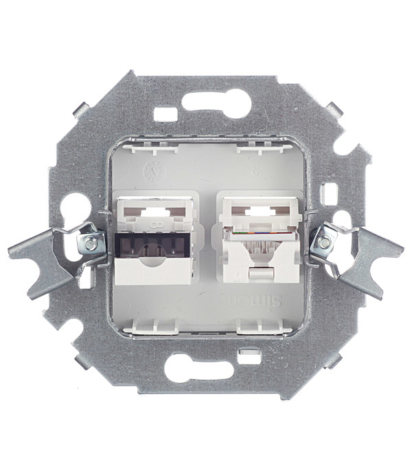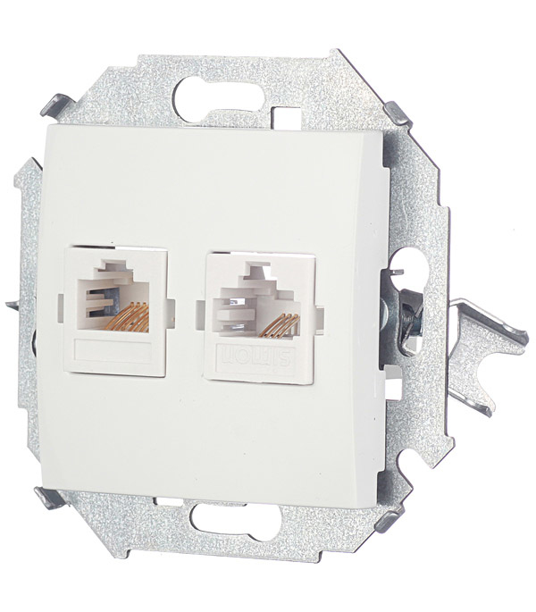 Механизм розетки телефонная + компьютерная RJ11+RJ45 кат.5е, Simon 15, белая