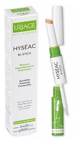- Состав стик: Di-Ci-12-13 alkyl malate, cetearyl isononanoate, CI 77891 (titanium dioxide), ozokerite, candellila ceta (euphorbia cerifera (candellila) wax, polybutene, silica, cera microcristallina (microcristallne wax), CI 77492 (iron oxides), copernica cerifera cera (copernica cerifera (carnauba) wax), glycolic Acid, C 30-50 alcohols, trimethoxycaprylylsilane, CI 77491 (iron oxides), piroctone olamine, CI 77499 (iron oxides), phytosphingosine, Aasiaticoside; лосьон: aqua, alcohol, glycolic acid, malic acid, salicylic acid, Uriage thermal spring water, arginine, sodium hydroxide, glycyrrhiza inflata root extract, CI 42090