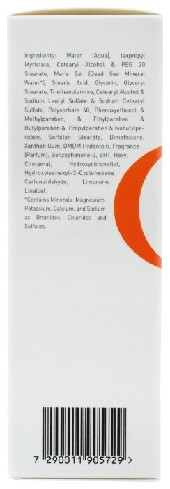 • Дополнительная информация активные ингредиенты: минеральная вода Мёртвого моря, стеариновая кислота, глицерин, минералы Мертвого моря: магний, калий, бромиды, хлориды, сульфаты