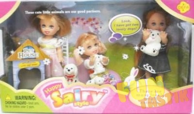 Кукла – это один из лучших подарков для девочек. Три очаровательных пупса, которые не расстаются со своими питомцами, обрадует любую малышку. Также в набор входит домик для домашних животных. Игрушки изготовлены из высококачественных полимерных материалов.