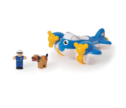 Набор из двух популярных игрушек из спасательной серии от WOW включает "Полицейский самолет Пит" и "Полицейский автомобиль Чарли". Толкните самолет, и его пропеллеры начнут вращаться, а если повернуть его хвост, Вам откроются три потайных отсека. С помощью руки фигурки нажмите кнопку на крыше автомобиля, и она откроется.