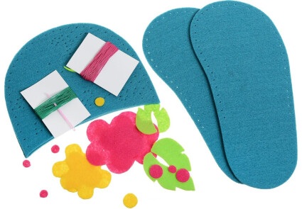 В набор входит: заготовки из фетра с отверстиями для сшивания, иголки- 2 шт., нитки, инструкция.