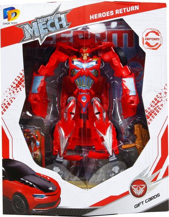 Робот имеет запоминающийся нетривиальный дизайн, с множеством проработанных элементов его конструкции и уникального внешнего вида. У игрушки множество шарниров, поэтому его конечности подвижны, а, буквально в несколько простых шагов,он перевоплощается в шустрый спортивный автомобиль с подвижными колесами.