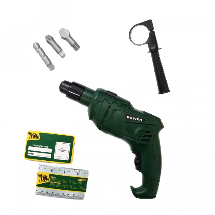 Игрушечная дрель в точности копирует настоящую, изготовлена в прочном пластиковом корпусе, а также оснащена звуковыми эффектами. Главной особенностью является крутящееся сверло игрушки, имитирующее работу настоящего перфоратора.