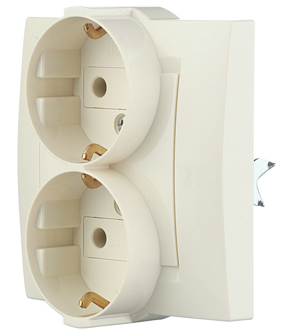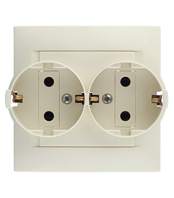 Розетка двойная Simon 15 Schuko с/у с заземлением моноблок 16А слоновая кость