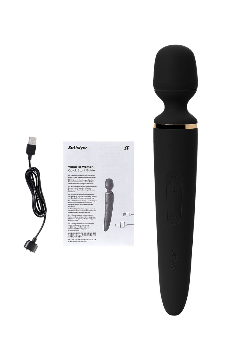 Вибратор Satisfyer нереалистичный Woman Wand с 10 режимами вибрации для эротического, антицеллюлитного и расслабляющего массажа, встроенный аккумулятор, длина 34 см, диаметр 5,7 см, черный, 34 см