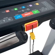 Широкие нескользящие поручни по бокам обеспечивают надежную страховку. На передних поручнях расположены датчики пульса и кнопки быстрой регулировки скорости и угла наклона.