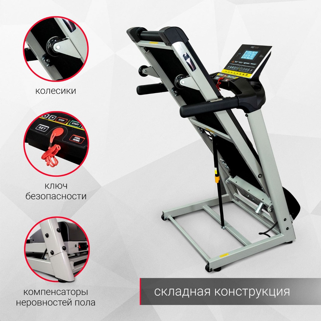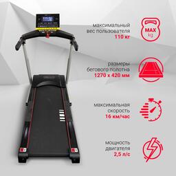 Мощность двигателя и надежная устойчивая конструкция обеспечивают комфортный бег для пользователей весом до 110 кг.