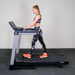 Автоматически регулируемый угол наклона дорожки с возможностью установки максимального угла в 15 % позволит выбирать тип местности для бега в соответствии с уровнем физической подготовки или требованием тренировки.