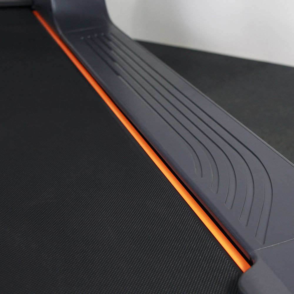 Боковые панели бегового полотна наклонены внутрь. За счет этого легче удерживать равновесие, нет опасности заступить за пределы бегового полотна и можно полностью сосредоточиться на тренировке.