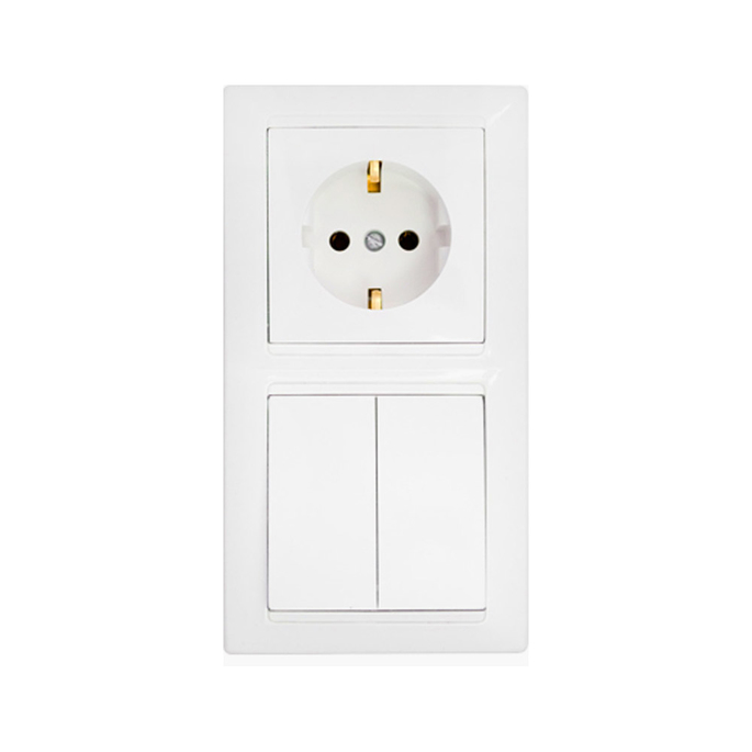 - Комплектация выключатель с розеткой в сборе