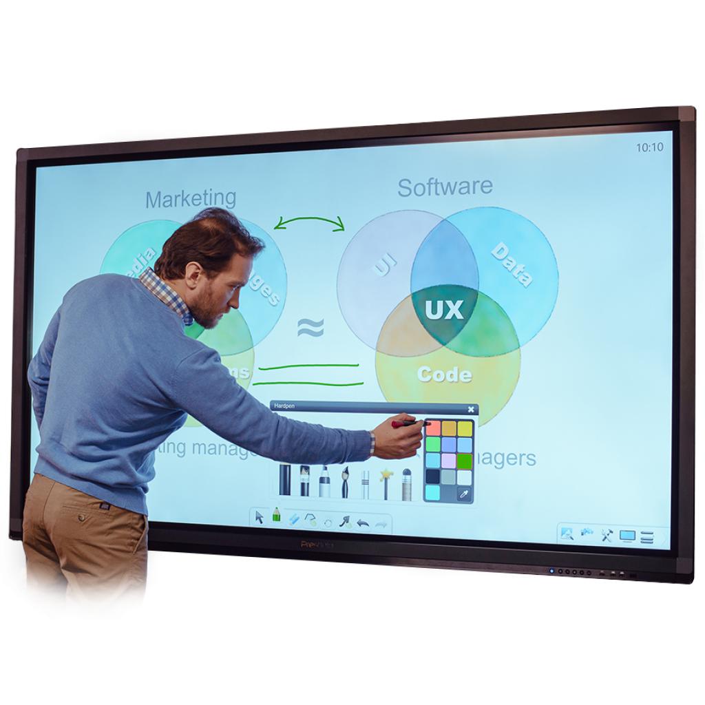 Рішення для інтерактивних нарад з віддаленими учасниками: Оскільки інтерактивний дисплей Prestigio MultiBoard оснащений Wi-Fi модулем, інтерактивні наради з віддаленими співробітниками стали реальністю без складної структури і глобальних витрат. Використовуючи планшет Prestigio MultiPad в якості зовнішнього інтерфейсу, а також периферію (веб-камеру, мікрофон, клавіатуру, миша), клієнт отримає інструмент для постійного зв'язку з колегами.