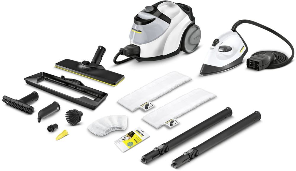 - Насадки в комплекте форсунка точечной струи,скользящая насадка для ковров,удлинительные трубки,насадка для мытья полов,паровой пистолет