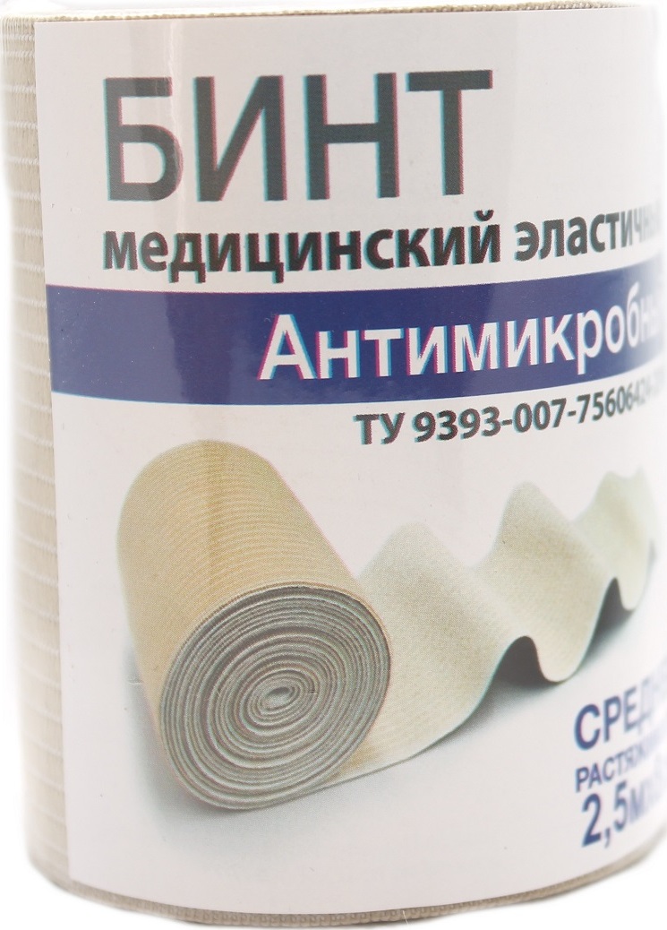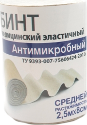 Бинт медицинский эластичный антимикробный средней растяжимости 2,5м х 8см
