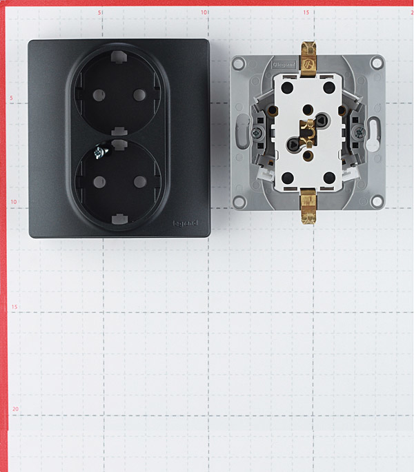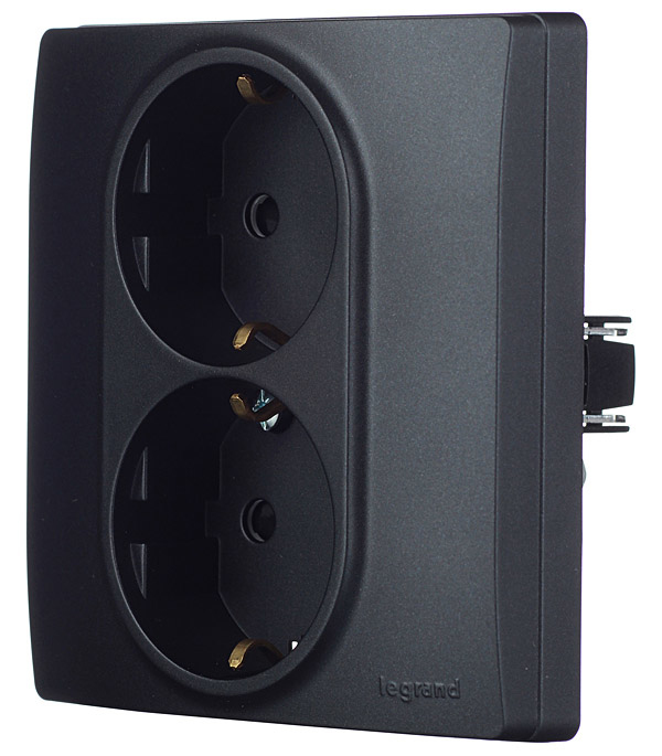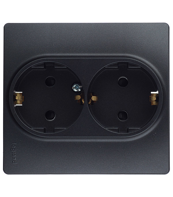 Розетка с рамкой Legrand Etika 672633 двойная скрытая установка антрацит с заземлением со шторк