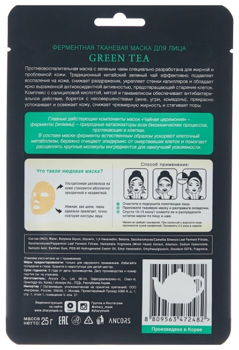 - Дополнительная информация активный компонент: зеленый чай, мята и гамамелис