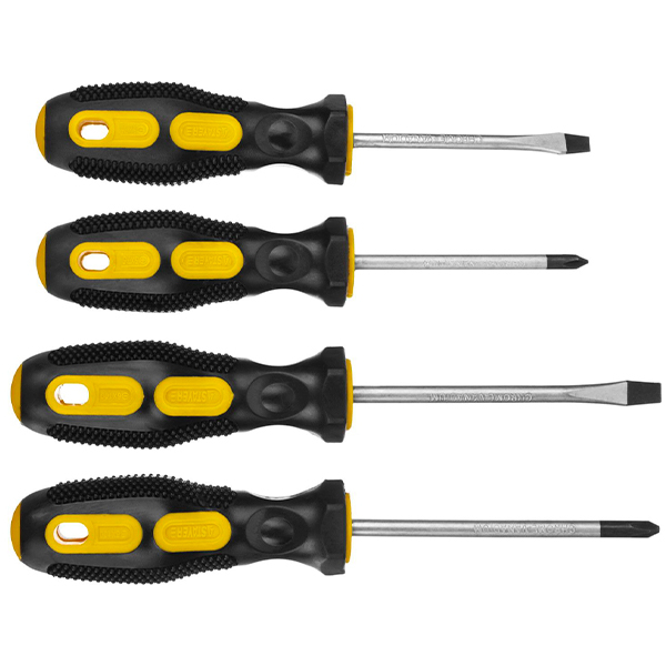 В наборе 2513-H4 имеется 4 отвертки: плоские - SL5, SL6; фигурные - PH1, PH2.