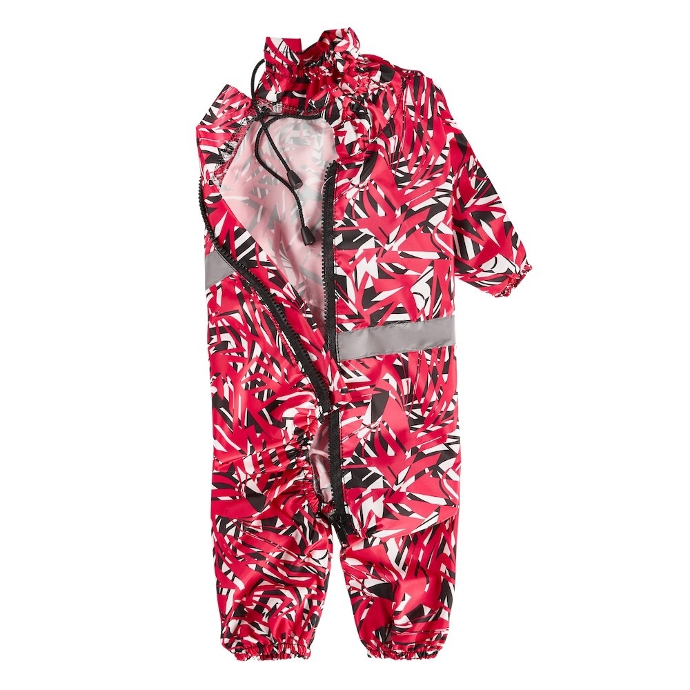 Комбинезон изготовлен из водоотталкивающей ткани, а резинки на манжетах обеспечивают хорошую посадку и препятствуют проникновению грязи под одежду. Дождевик не сковывает движения собаки во время прогулок, поэтому питомцу будет комфортно в нем бегать и играть.