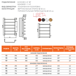 Резьба Резьба в месте присоединения полотенцесушителя к системе водопровода или отопления может быть нанесена снаружи или внутри. Резьба1/2",1"