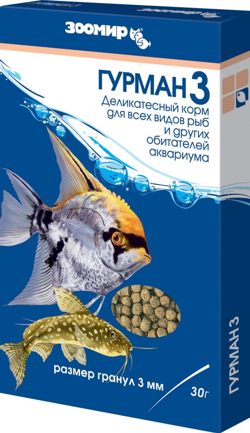 ЗООМИР Гурман-3, деликатес для всех рыб (размер гранул 3 мм), коробка 30 г
