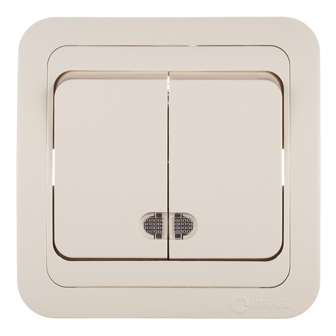 Выключатель двухклавишный Makel Mimoza с/у с подсветкой бежевый