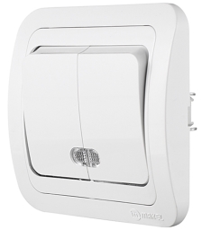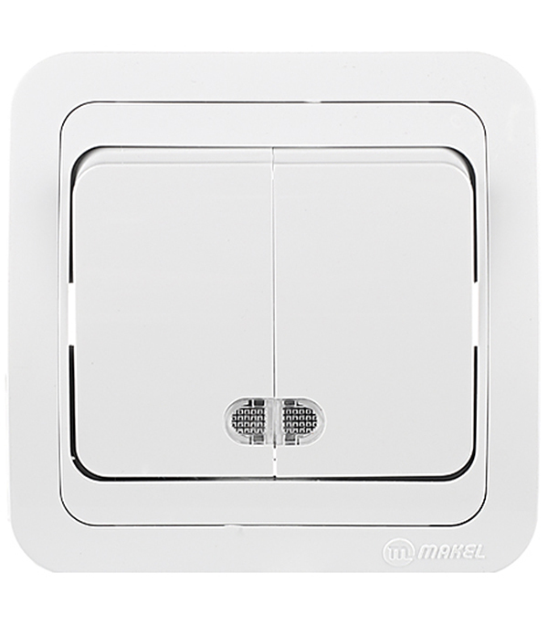Выключатель двухклавишный Makel Mimoza с/у с подсветкой белый