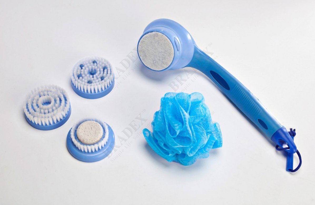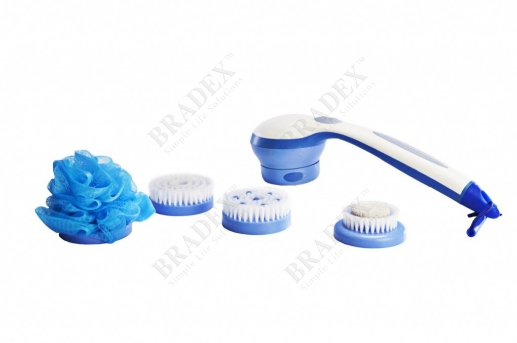 ПрименениеЭлектрическая массажная щетка «ГЛАДКАЯ КОЖА» содержит в комплекте 5 разнофункциональных насадок: - Насадка в форме мочалки позволяет достать все труднодоступные места Вашего тела. - Специальная поролоновая насадка предназначена для купания малышей. - Массажная насадка поможет справиться с целлюлитом, улучшить кровообращение, обменные процессы в организме. - Насадка с резиновыми пальчиками осуществляет интенсивный массаж тела плюс дает скрабирующий эффект. - Насадка с пемзой помогает привести в идеальное состояние ступни с помощью эффективного пилинга. Работает от 3 батареек АА типа. Способ применения: 1. Добавьте на насадку жидкого мыла или геля, чтобы образовалась пена, вылив его в специальный резервуар. 2. Для включения/выключения прибора используйте кнопки ON/OFF. 3. Начните использовать прибор. Будьте внимательны: чтобы не допустить повреждения кожи, насадки сконструированы таким образом, что могут отсоединиться, если будет приложено чрезмерное усилие при нажатии. Противопоказания: - Запрещается использовать прибор людям с физическими и умственными недостатками без дополнительного присмотра. - Не используйте прибор, если у вас есть поврежденные участки кожи, сыпь, в том числе и угревая, или иные проблемы с кожей. Меры предосторожности: - Во время принятия душа не откручивайте колпачок и не переставляйте батарейки. Убедитесь, что Ваши руки полностью сухие, прежде чем менять батарейки и откручивать колпачок. - Не рекомендуется наполнять прибор жидким мылом или гелем для душа, когда он включен. Рекомендации по уходу: Не требует особого ухода. Рекомендуется лишь после каждого использования промывать насадки и сам прибор, избавляя его от остатков мыла или геля.