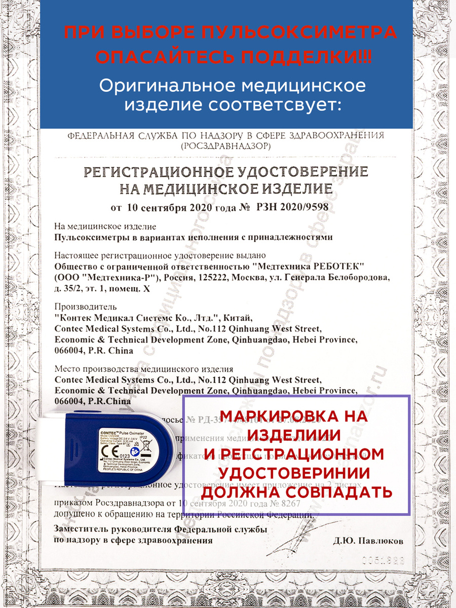 Пульсоксиметр CONTEC на палец для измерения кислорода в крови