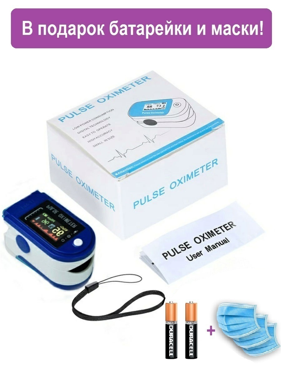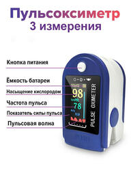 Пульсоксиметр на палец медицинский, 3 показателя, цветной экран, батарейки