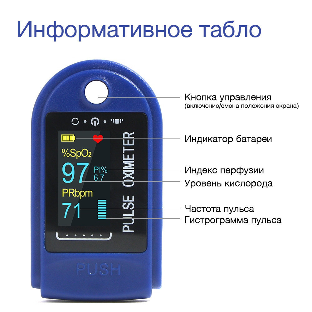 Пульсоксиметр медицинский (оксиметр) пульсометр на палец для измерения кислорода в крови, батарейки в комплекте