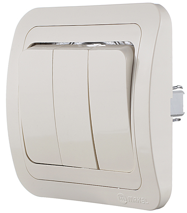 Выключатель трехклавишный Makel Mimoza с/у бежевый