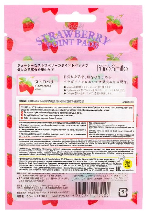- Состав вода, глицерин, пропандиол, экстракт земляники чилийской, гиалуронат натрия, сок алоэ вера, метилпарабен, PEG-60 гидрогенизированное касторовое масло, PEG-40 гидрогенизированное касторовое масло, феноксиэтанол, экстракт протулака, экстракт аниса, 1,2-гександиол, каприлил гликоль, экстракт листьев чая, аллантоин, пантенол (витамин В), ароматизатор, EDTA-2Na, гидроксиэтилцеллюлоза, токоферола ацетат (витамин Е), цитрат натрия, гидролизованный коллаген, арбутин