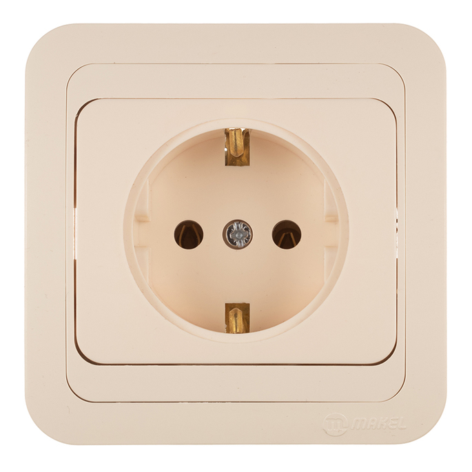 Розетка Makel Mimoza с/у с заземлением керамика бежевая