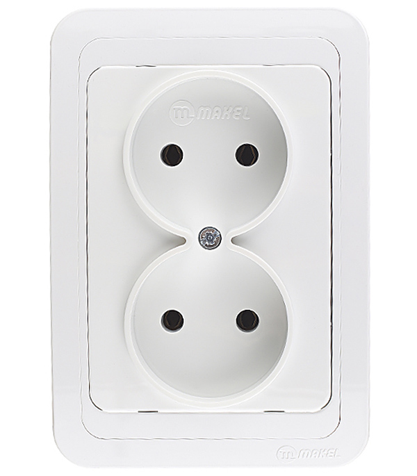 Розетка двойная Makel Mimoza с/у без заземления белая