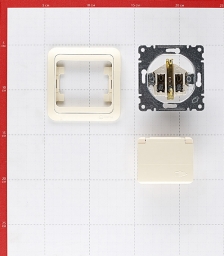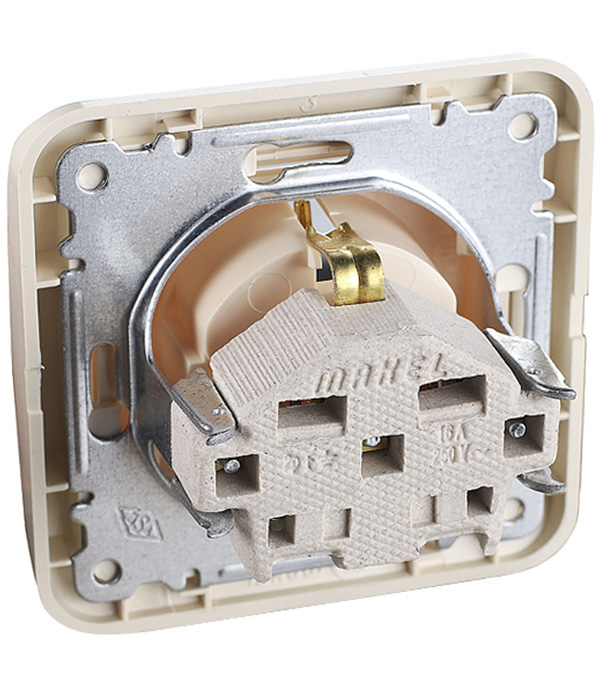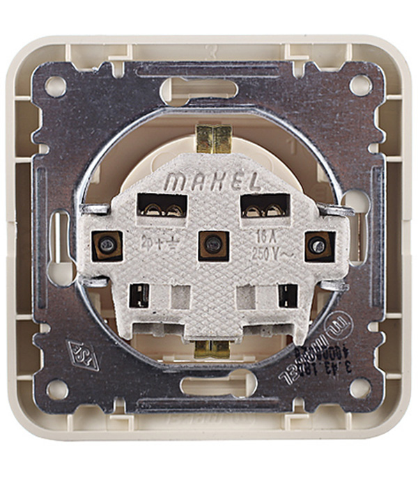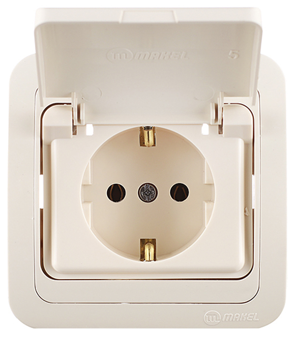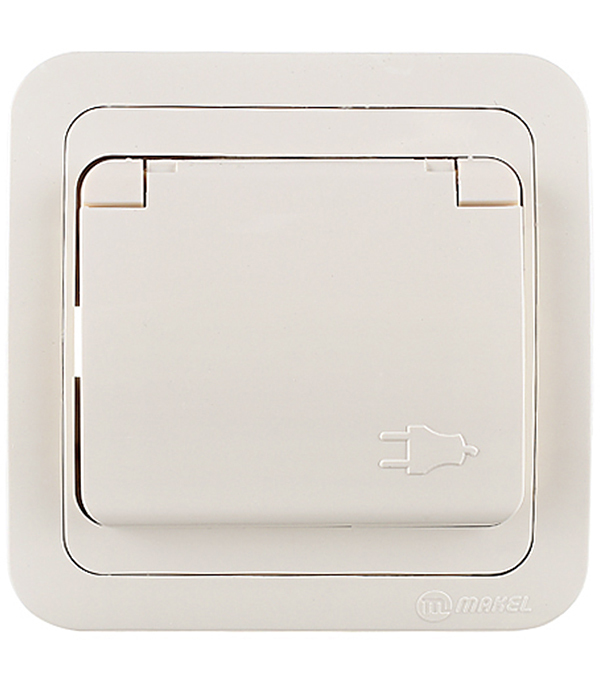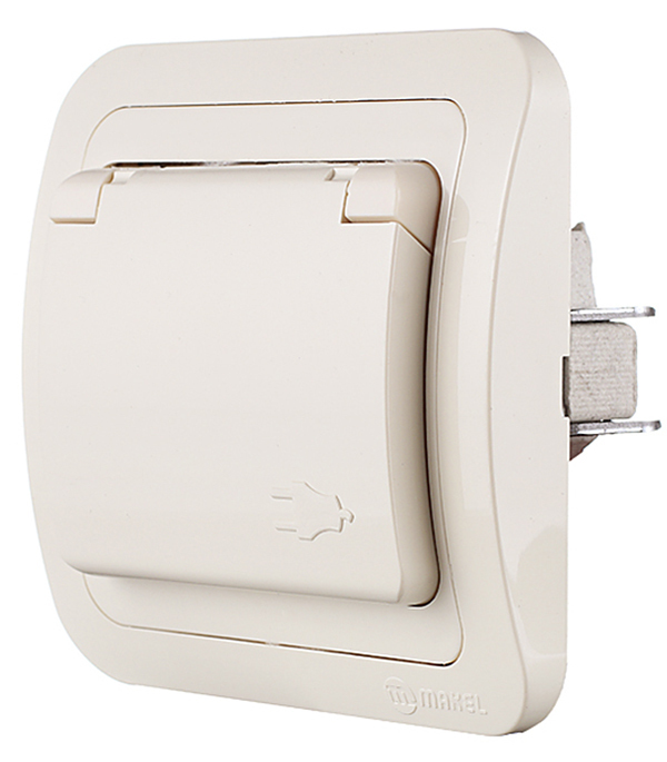 Розетка Makel Mimoza с/у с заземлением с крышкой со шторками керамика бежевая