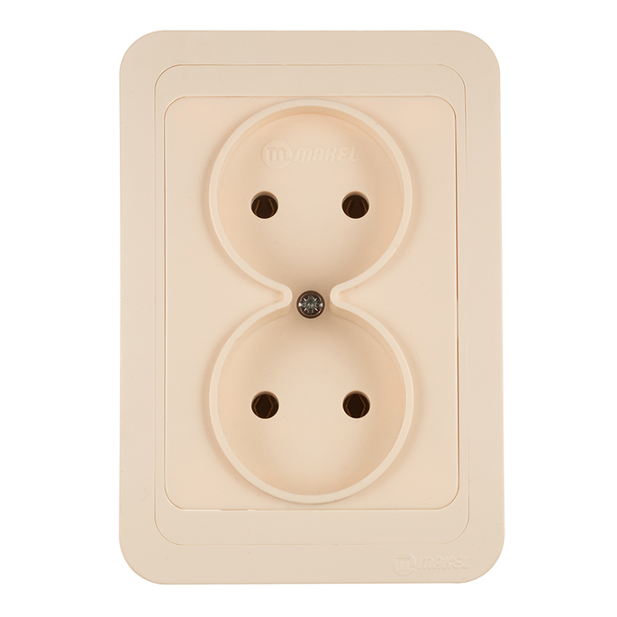 Розетка двойная Makel Mimoza с/у без заземления бежевая