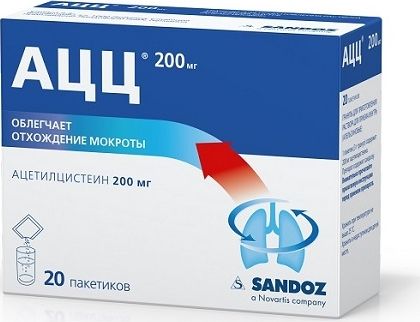 - Способ применения: Гранулы следует растворять в воде, соке или холодном чае и принимать после еды. Дополнительный прием жидкости усиливает муколитический эффект препарата. При кратковременных простудных заболеваниях длительность курса составляет 5-7 дней. При длительных заболеваниях курс терапии определяется лечащим врачом. При хронических бронхитах и муковисцидозе препарат следует принимать более длительное время для достижения профилактического эффекта при инфекциях. При отсутствии других назначений рекомендуется придерживаться следующих дозировок: Муколитическая терапия: взрослые и подростки старше 14 лет: по 2 пакетика АЦЦ 100 мг или по 1 пакетику АЦЦ 200 мг 2-3 раза в день (400-600 мг в день); дети от 6 до 14 лет: 1 пакетик 3 раза в день или 2 пакетика 2 раза в день АЦЦ 100 мг (300-400 мг в день). АЦЦ 200 мг следует принимать 3 раза в день по 1/2 пакетика или 2 раза в день по 1 пакетику (300-400 мг в день); дети от 2 до 6 лет: по 1 пакетику АЦЦ 100 мг или 1/2 пакетика АЦЦ 200 мг 2-3 раза в день(200-300 мг в день). Муковисцидоз дети старше 6 лет: по 2 пакетика АЦЦ 100 мг или по 1 пакетику АЦЦ 200 мг 3 раза в день (600 мг в день); дети от 2 до 6 лет: по 1 пакетику АЦЦ 100 мг или по 1/2 пакетика АЦЦ 200 мг 4 раза в день (400 мг в день); пациенты с массой тела ? 30 кг: в случае необходимости возможно увеличение дозы до 800 мг.