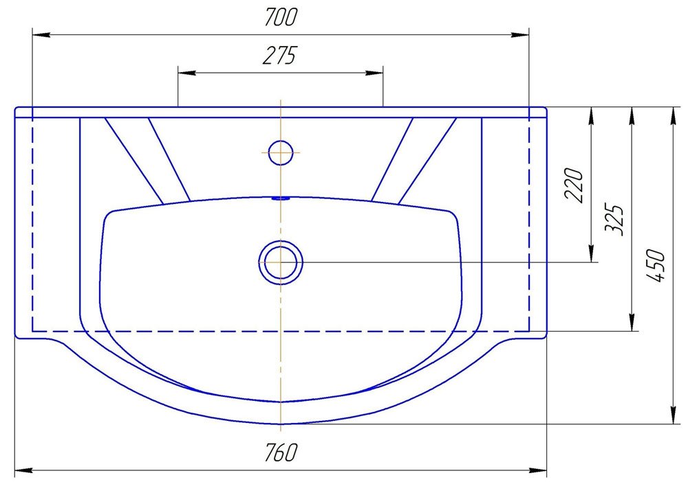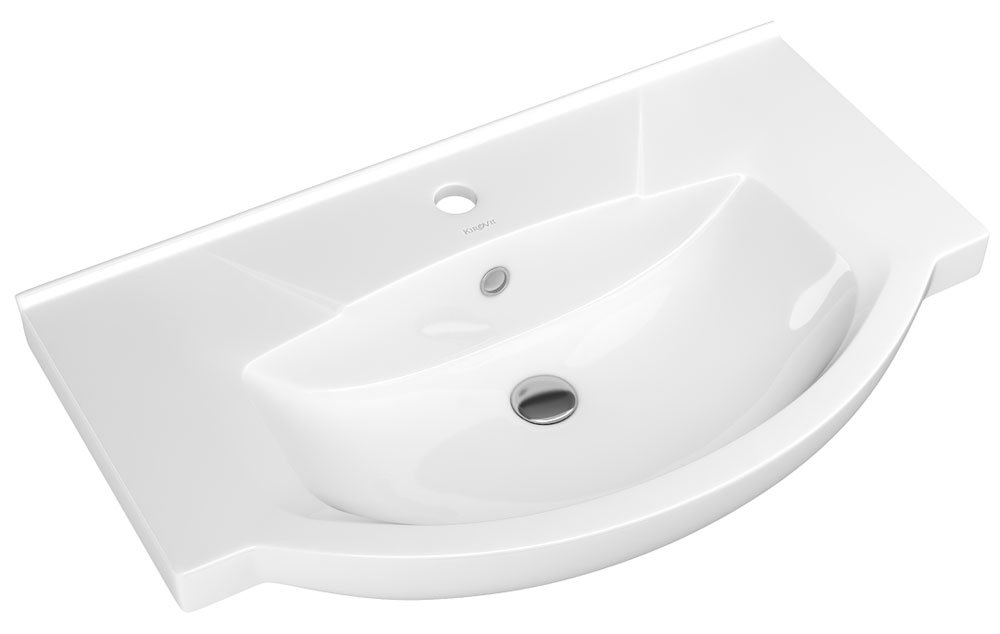 Умывальник на тумбу, ширина 76 см, длина 45 см, форма: нестандартная, санитарная керамика, отверстие под смеситель, отверстие под перелив.