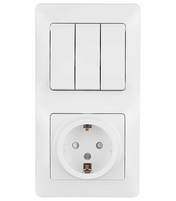Блок (3-х кл.выкл.+ розетка с з/к ,со штороками) Schneider Electric Glossa белый