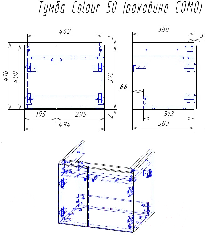 - Ширина тумбы под умывальник 49.4 см