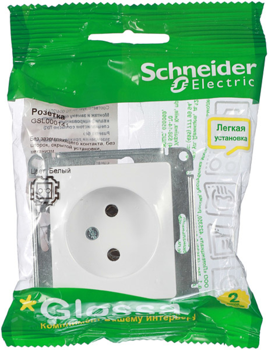 Механизм розетки Schneider Electric Glossa с/у без заземления белый