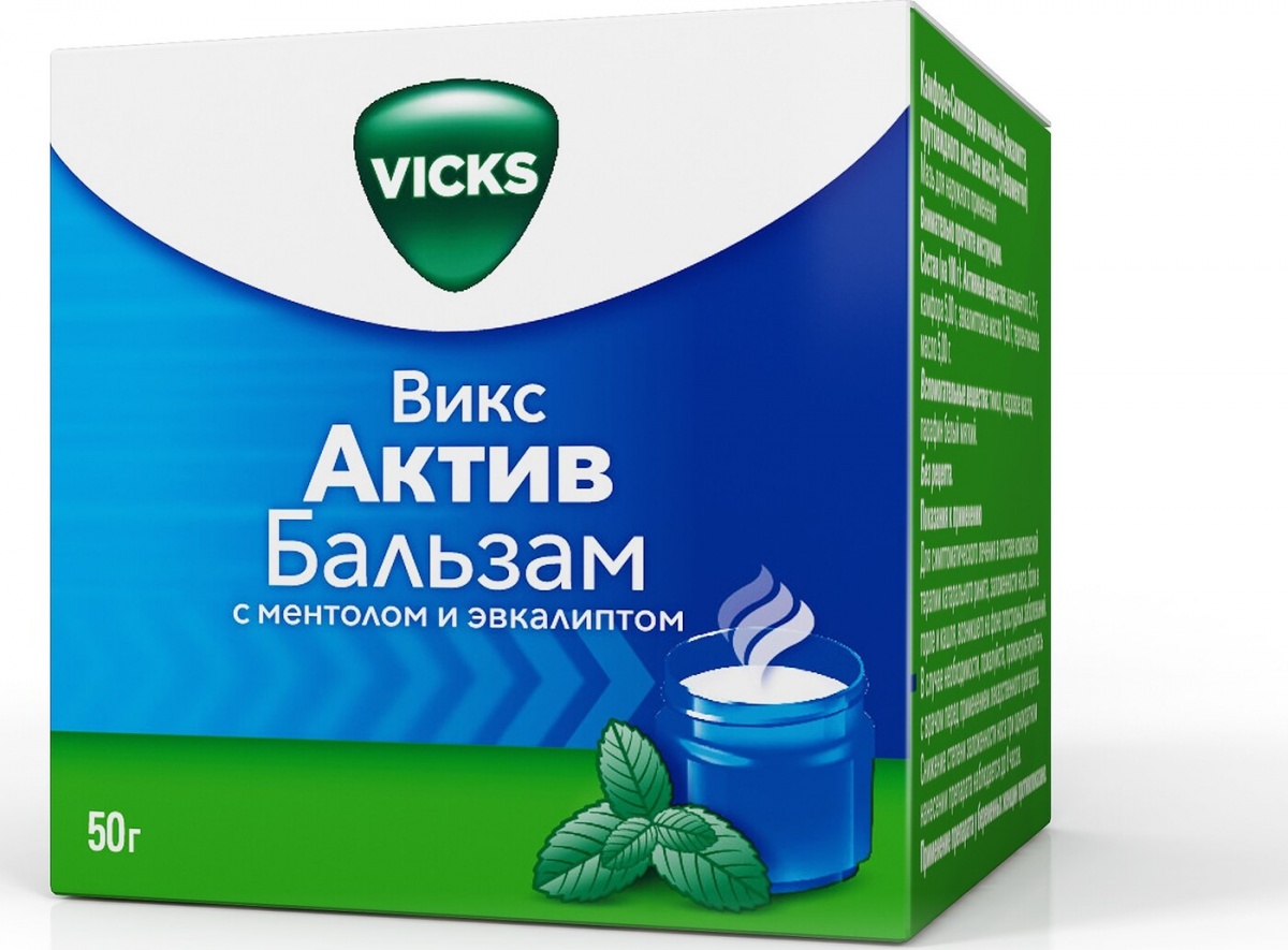 ВИКС Актив Бальзам с ментолом и эвкалиптом Мазь для наружного применения, 50 г