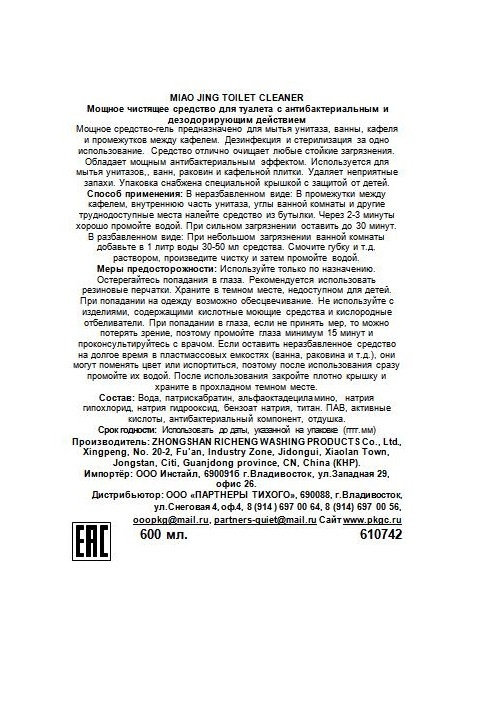 - Тип Средство для ванной и туалета