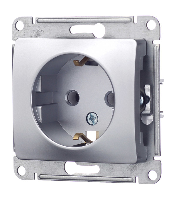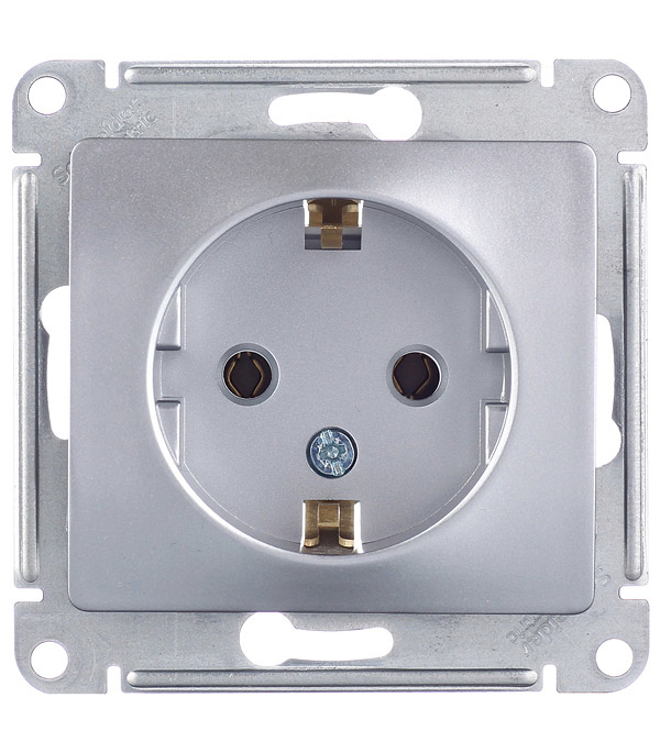 Механизм розетки с/у с заземлением Schneider Electric Glossa алюминий